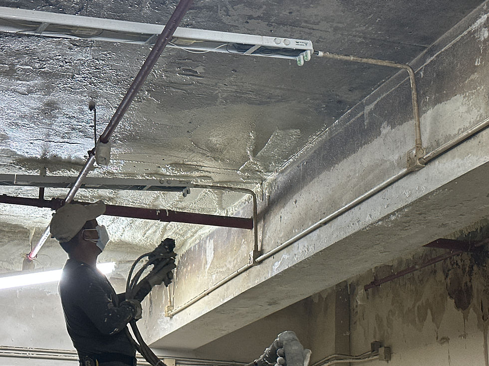 面對這種情況,我們採取了液態加熱無縫隔熱噴塗技術,能夠顯著降低物體表面的溫度變化。 透過使用閉孔聚氨酯發泡(Polyurethane)作為噴塗材料,我們能夠充分利用其膨脹和黏附的特性。 這種材料能夠緊密地覆蓋在天花板上,形成一層堅固的保護層,防止冷凝水的產生。